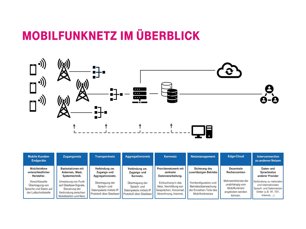 Die drei großen Bereiche eines Mobilfunknetzes