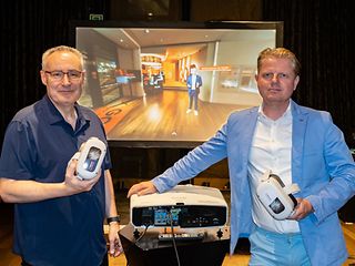 Oliver Kepka, Projekt-Verantwortlicher aus dem Segmentmarketing KMU, und Mark Schüler, Direktor GOP-Theater Bonn. © DTAG