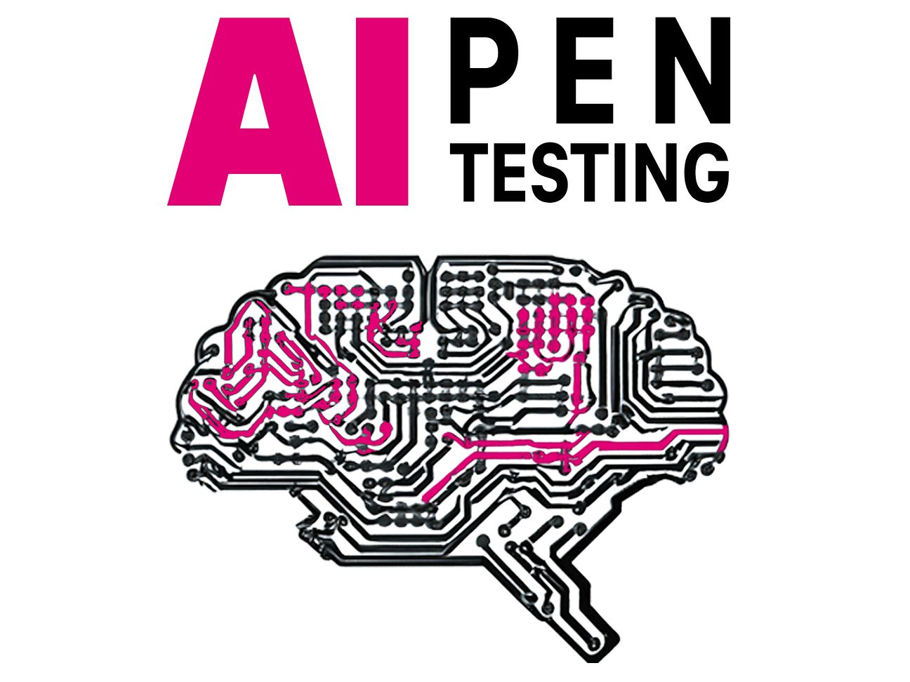 Grafik zum Thema neuronales Netz mit dem Schriftzug „AI Pentesting“