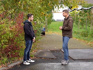 Unternehmenssprecher Maik Exner (r.) im Gespräch mit Telekom-Experte Jan Unnasch.