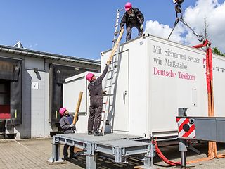 Das DRM-Team der Telekom hatte auf der gegenüberliegenden Straßenseite einen Container hochwassergeschützt aufgestellt und so die verlorene Betriebsstelle ersetzt. Rund 8.000 Anschlüsse beheimatet diese "Ersatz-Betriebsstelle auf Stelzen". Möglich ist so etwas nur, wenn im Ernstfall jeder Handgriff sitzt.