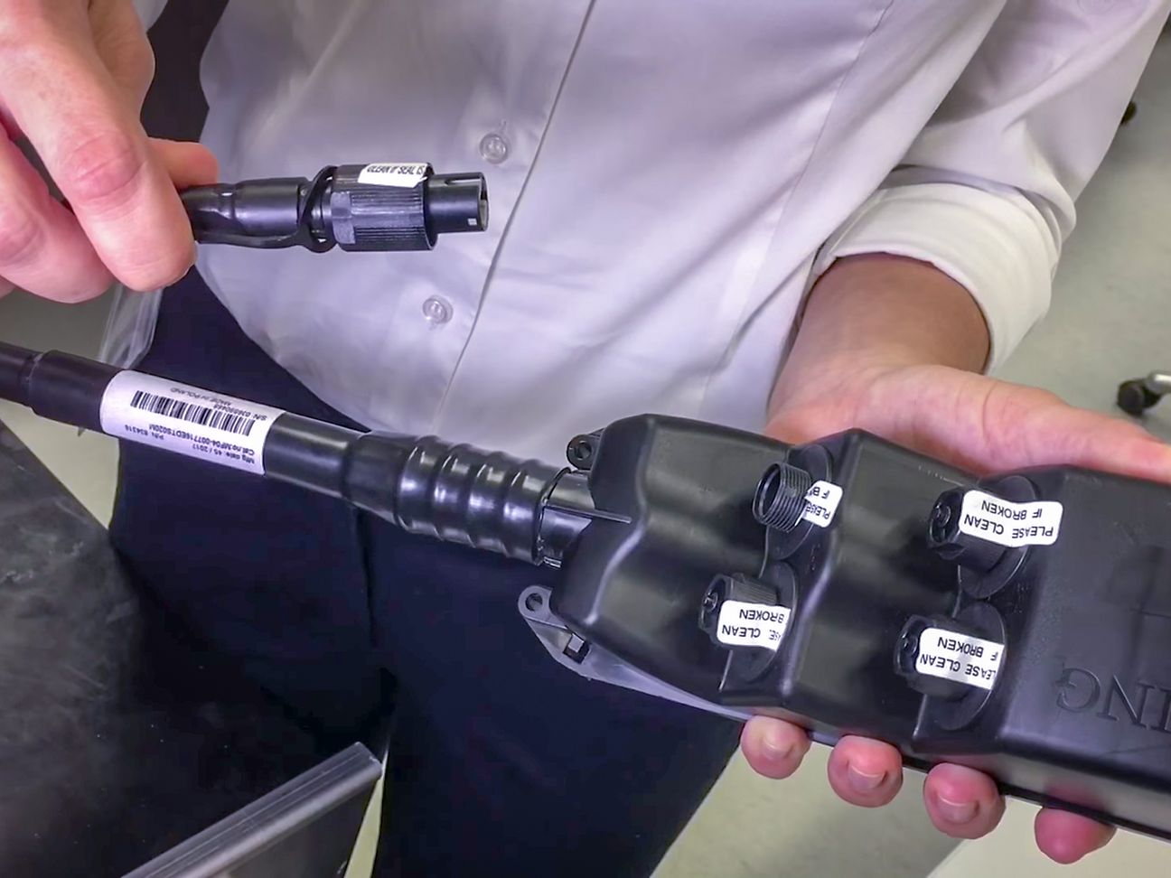 Rebecca Miller vom Vertrieb der Firma Corning erklärt das Anschlusssystem.