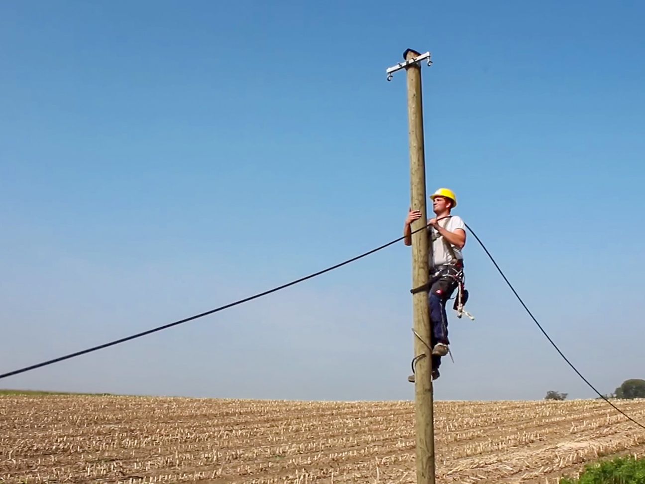 Auch zu abgelegen Höfen und durch schwierigies Gelände verlegt die Telekom Glasfaser. Manchmal führt sie das Kabel über Holzmasten – und genau dafür gibt es eine neue spannende Technik.