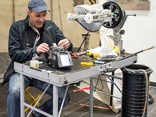 „Das Vorbereiten einer Muffe – also Aufbauen, Einlegen und Bevorraten – dauert rund einen Tag“, erläutert der Experte. Ein weiterer ist für das Verbinden der feinen Fasern nötig.