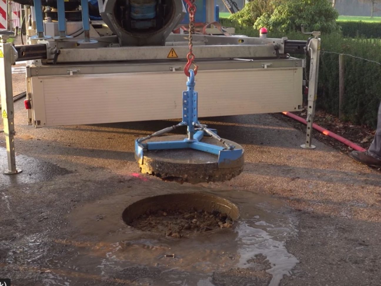 Der Deckel wird nach den Bauarbeiten wieder an die gleiche Stelle eingelassen und verfugt.