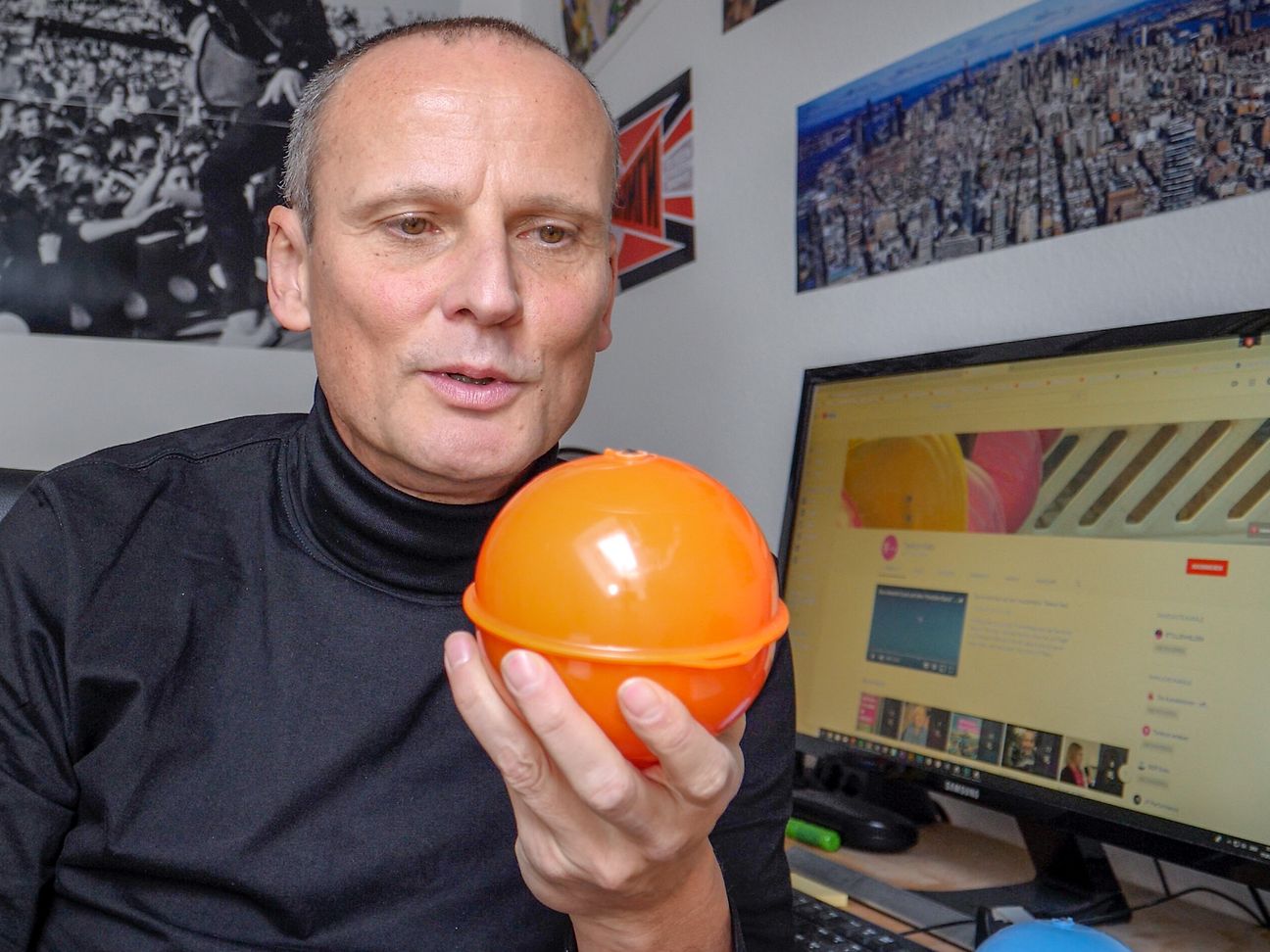 Der Kugelmarker ist ein farbiger Plastikball, mal orange, mal blau oder grün, mit ein klein wenig Technik im Inneren. Auf den ersten Blick erinnert er an eine Bocciakugel, und ist mit knapp elf Zentimetern Durchmesser auch ähnlich groß - aber mit 350 Gramm deutlich leichter.