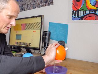 Nach dem Aufbohren lässt sich zunächst die Flüssigkeit ausschütten, die sich (ähnlich wie bei billigen Bocciakugeln) im Inneren des Kugelmarkers befindet. Sie besteht aus einem unschädlichen und biologisch abbaubaren Mix aus Wasser und Propylenglycol, der bis zu minus 20 Grad frostsicher ist.