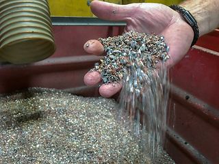 Zuerst werden die Batterien entfernt, weil diese Schadstoffe enthalten und die Geräte grob zerkleinert. Danach erfolgt die Trennung in schwere und leichte Bestandteile. In mehreren Schritten werden magnetisches Eisen, Aluminium, Kunststoffe und andere Bestandteile aussortiert. "Das gewonnene Metall", erklärt Hannes Fröhlich, "geht dann zur Kupferhütte, wo Rohstoffe wie Kupfer, Gold, Silber oder Palladium zurückgewonnen werden".