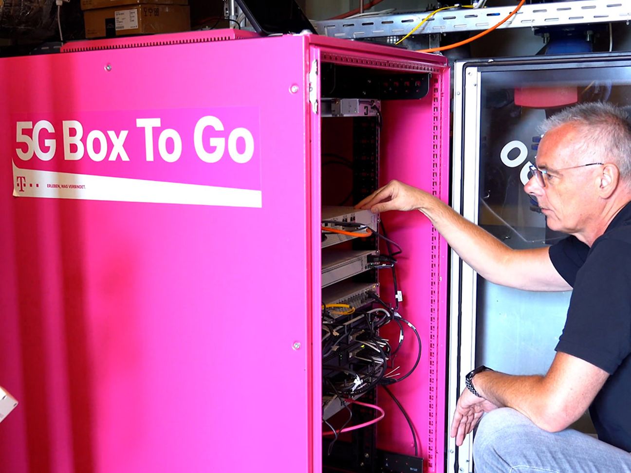 Torsten Chudobba, Geschäftskunden-Berater bei der Telekom, beschreibt die Campus Box to Go als ein mobiles 5G-Standalone-Testsystem.