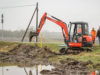 Schäden durch Bagger oder durch Witterung kommen häufig vor. Dieser Bagger allerdings ist zum Reparieren gekommen.