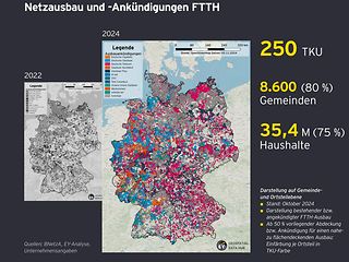 Erfreulich insgesamt ist, dass der Glasfaserausbau eine sehr positive Dynamik entwickelt hat. EY prognostiziert, dass 2025 voraussichtlich die Hälfte aller Haushalte Zugang zu Glasfaser haben werden. Dabei übernimmt die Telekom eine Schlüsselrolle: Die Telekom bietet - Stand heute – mehr als 10 Millionen Haushalten in Deutschland Glasfaser an. Der Anteil der von der Telekom versorgten FTTH-Haushalte ist damit von 2021 bis 2025 von 36 Prozent auf 48 Prozent gestiegen. Insgesamt gibt es heute in Deutschland rund 250 Telekommunikationsunternehmen, die Glasfaser in erster Linie eigenwirtschaftlich bauen und betreiben. Davon profitieren heute etwa 75 Prozent aller Haushalte, für die bereits ausgebaut wurde bzw. wo entsprechende Ausbauvorhaben angekündigt sind bzw. gerade durchgeführt werden. Der entstandene Infrastrukturwettbewerb ist aus volkswirtschaftlicher Sicht positiv zu bewerten, wie die Verfasser der Studie festhalten. Der Kampf um Marktanteile forciert den Glasfaserausbau und Kunden erhalten eine größere Auswahl an Anbietern und Inhalten.