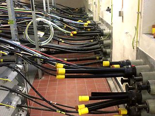 Erdkabel kommen im Keller der Betriebsstelle an.