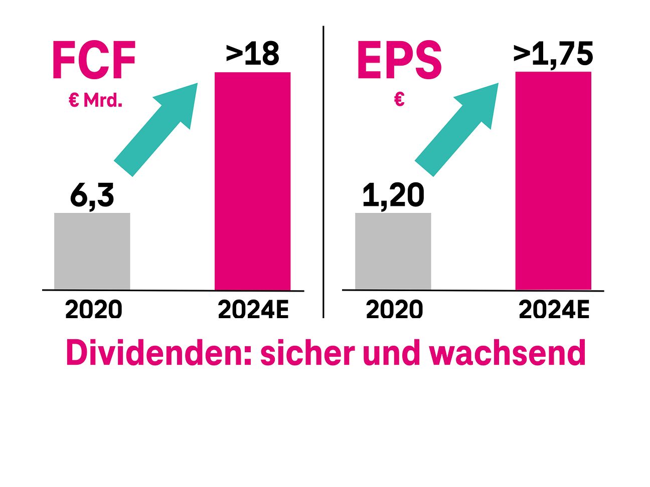 Seit dem Börsengang im Jahr 1996 hat die Deutsche Telekom 15 € je Aktie oder insgesamt mehr als 62 Milliarden € an Dividenden ausgeschüttet (Stand Mai 2022).
