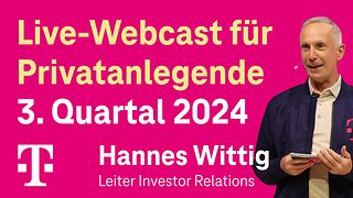 Ende Oktober 2024 erklärt Tim Höttges, der CEO der Deutschen Telekom AG, die Strategie und den Ausblick für die kommenden drei Jahre und stellt sich im Anschluss den Fragen von Privatanlegenden.