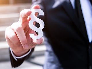 Hand hält Paragraphenzeichen.