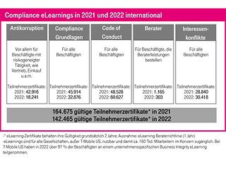 Hier finden Sie Kennzahlen zu den zentralen Compliance-Maßnahmen der Deutschen Telekom.