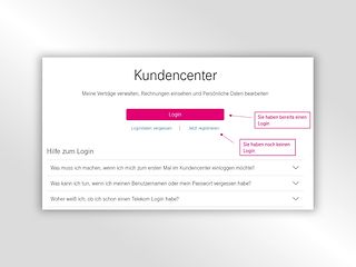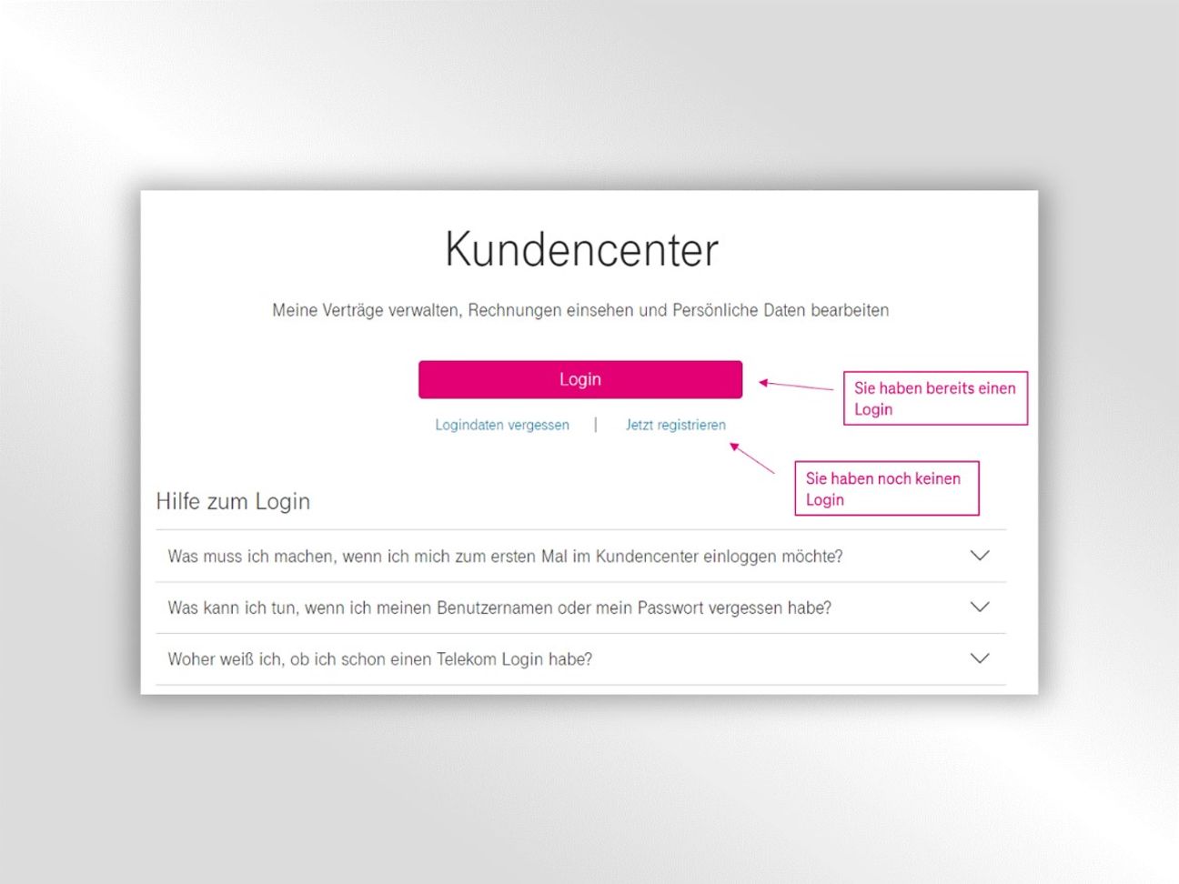Loggen Sie sich im Internet unter www.telekom.de/kundencenter mit Ihrem persönlichen Benutzernamen und Passwort ein.