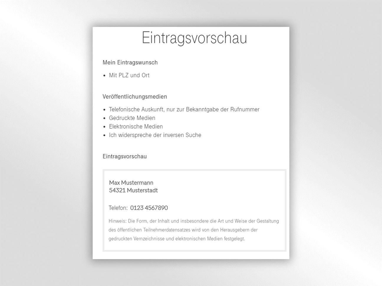 Sie möchten wissen, ob Ihr Name im Telefonbuch eingetragen ist oder bei der Auskunft erfragt werden kann? Im Kundencenter können Sie den Eintrag selbst anlegen, ändern oder löschen.