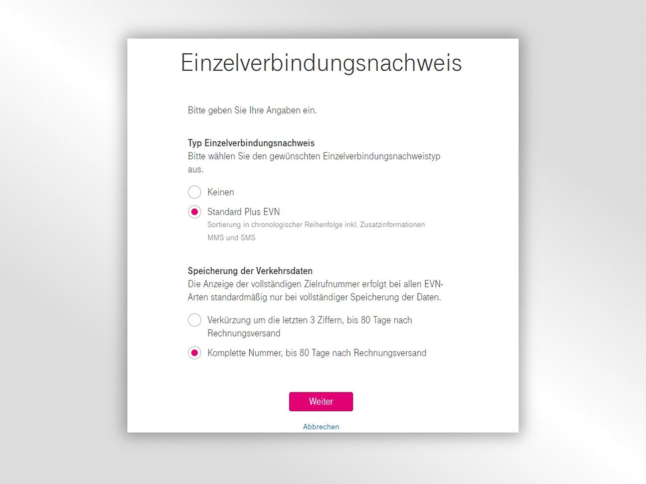 Wir möchten, dass Ihre Daten immer geschützt sind. Deshalb senden wir Einzelverbindungsnachweise nicht an Ihre E-Mail-Adresse. Sie können den Nachweis aber jederzeit im Kundencenter aufrufen und ausdrucken.