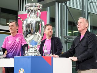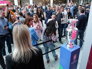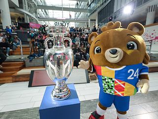 Der EM-Pokal geht im Vorfeld der EURO 2024 auf Trophy-Tour und hat dabei auch in der Bonner Telekom-Zentrale Station gemacht.