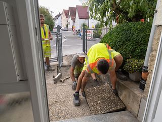 Die letzten Meter zum Kunden: Das Glasfaserkabel wird ins Haus gelegt.