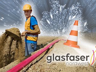 Bauarbeiter. Firmenlogo Glasfaser Nordwest