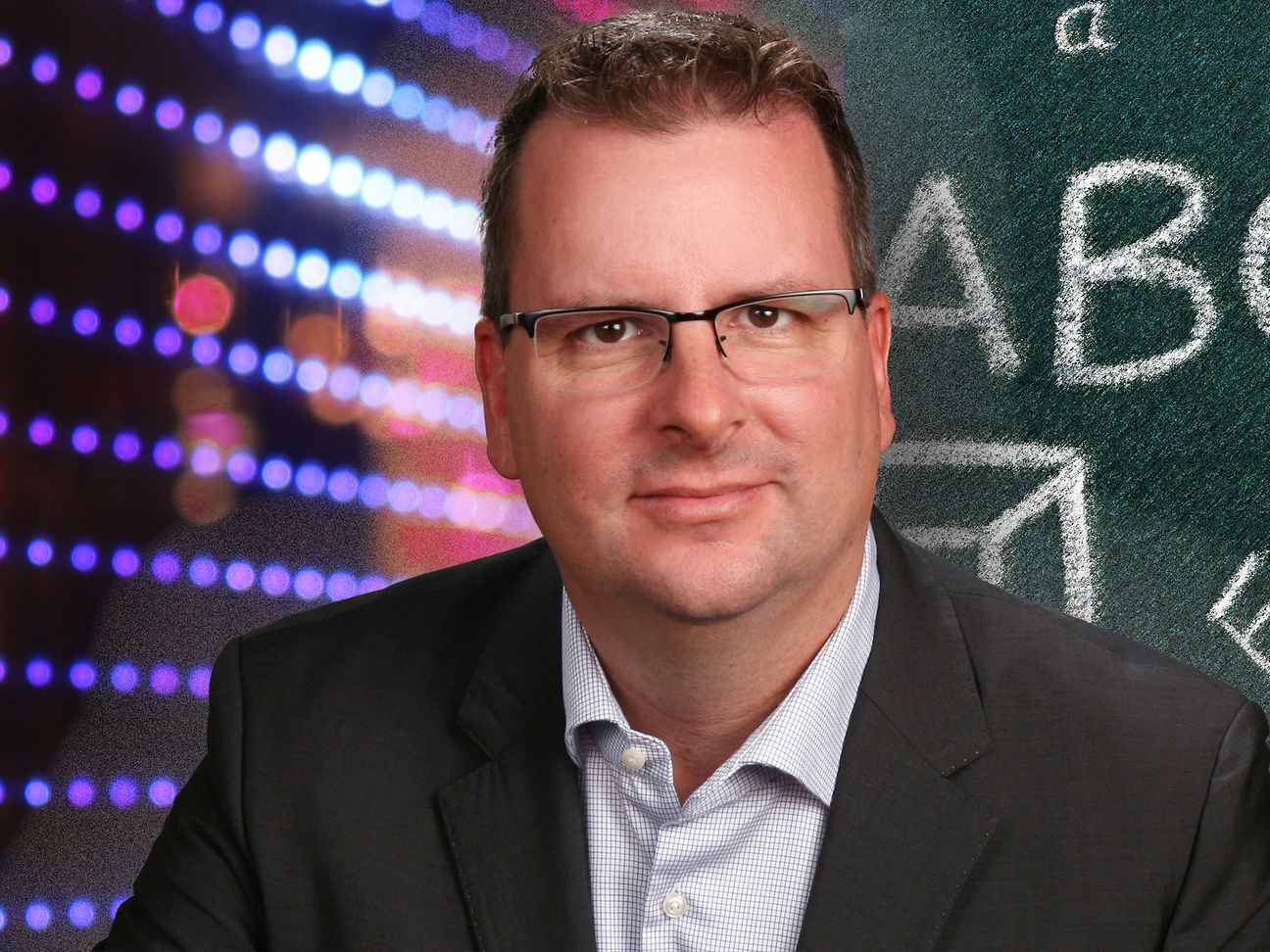 Alexander Nollen vor digitaler Tafel.