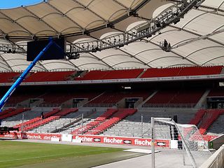 Der Fußballsommer kann kommen - das Video zeigt, wie die neueste Antennentechnik in der Stuttgart Arena installiert wurde.
