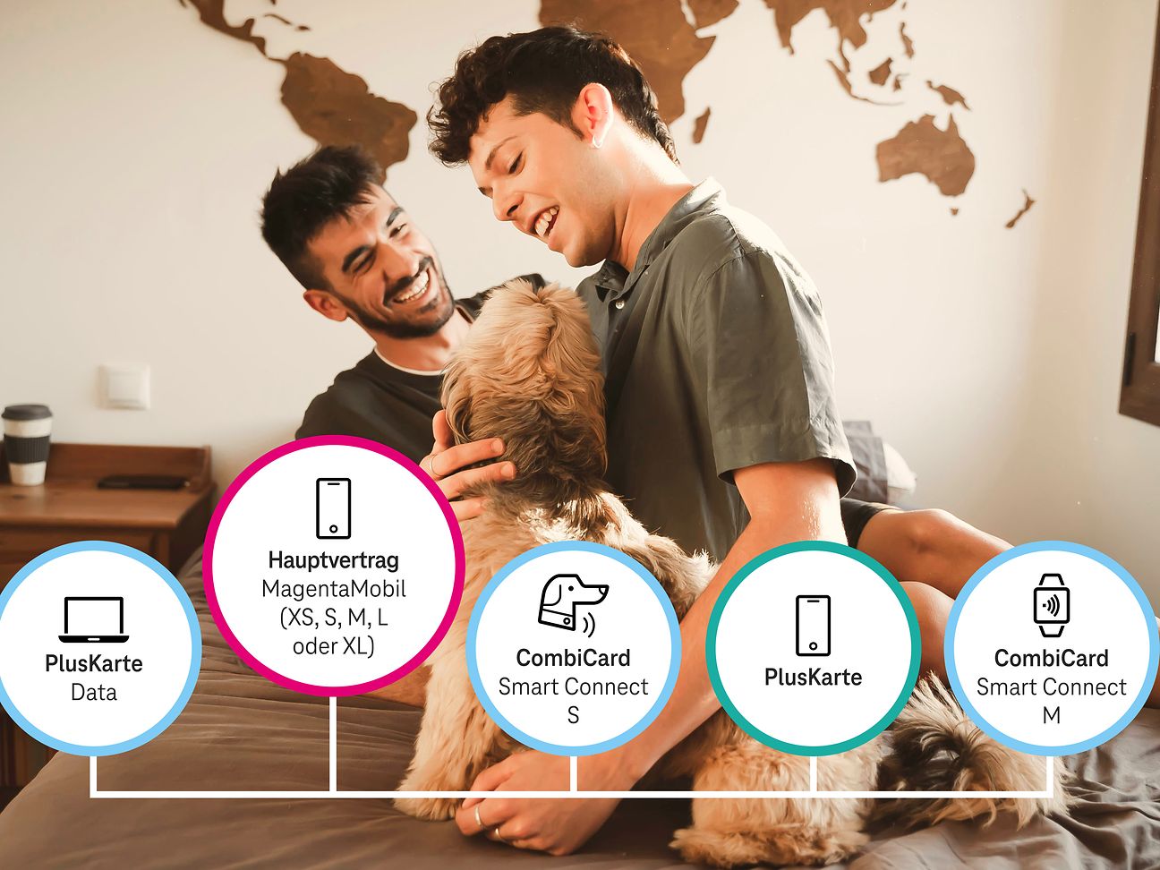 Zusatzkarten sind zusätzliche SIM-Karten, die Kunden und Kundinnen zu einem bereits bestehenden Mobilfunkvertrag hinzubuchen. Bei der Telekom können bis zu zehn solcher zusätzlichen SIM-Karten an einen Hauptvertrag gekoppelt werden. Das Angebot umfasst Tarife für Familienangehörige oder Freunde ebenso wie für die Datennutzung am Tablet oder Laptop. Bei der Telekom heißen diese Tarife PlusKarten. In beiden Fällen nutzen Kund*innen weiterhin die Vorteile ihres Haupttarifs und sparen pro Zusatzkarte jeden Monat – denn die Zusatzkarten-Tarife der Telekom sind im Vergleich zu einem neuen Vertrag deutlich günstiger. Darüber hinaus gibt es Zusatzkarten für den Einsatz von Smartwatches und IoT-Geräten.