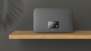 Das Bild zeigt ein Regal auf dem ein Telekom-Router steht.