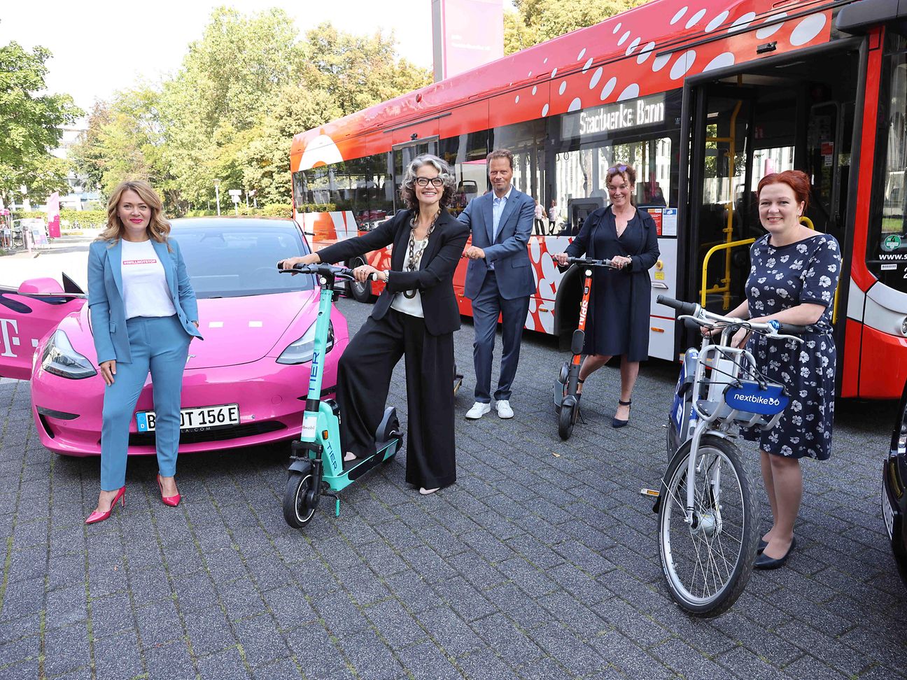 (v.l.n.r.) Olga Nevska (Geschäftsführerin Telekom MobilitySolutions), Claudia Nemat (Vorstand Technology and Innovation, Deutsche Telekom), Michael Frankenberg (CEO Hacon), Anja Wenmakers (Geschäftsführerin SWB mobil), Katja Dörner (Oberbürgermeisterin Bonn).