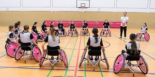 Die „Neue Sporterfahrung“ bietet Rollstuhlbasketball an, um Kindern und Jugendlichen die schnelle und leidenschaftliche Jagd nach Körben auf Rädern nahbarer zu machen.