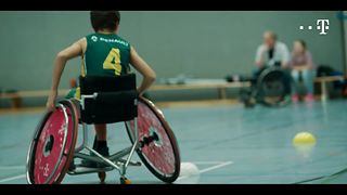 Übungsleiter erklären gemeinsam mit den Spielern, wobei es beim Rollstuhlbasketball ankommt und wie sie ihren Alltag meistern. © Deutsche Telekom