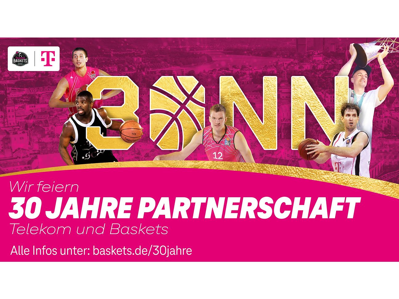 Nicht nur die Deutsche Telekom AG, auch die Telekom Baskets Bonn feiern dieses Jahr ihr 30-jähriges Bestehen. Seit der Gründung des Bonner Basketballvereins ist die Telekom als Hauptsponsor aktiv. Anlässlich der Feierlichkeiten des Basketball-Bundesligisten sind auch eine Reihe von Projekten geplant.
