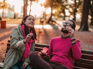 Eine Frau und ein Mann auf einer Parkbank.