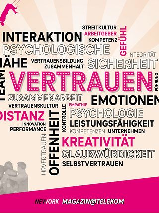 Auf dem Cover stehen in Worten die unterschiedlichen Facetten von Vertrauen