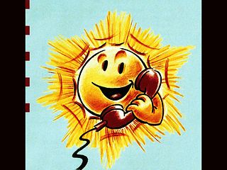Informationsblatt zur Tarifänderung 1996, lachende Sonne mit Telefon.