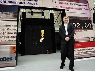 In der Festhalle auf dem Frankfurter Messegelände lockt die erste öffentliche Hauptversammlung der Deutschen Telekom AG rund 10.000 Aktionäre an. Die Rede von CEO Ron Sommer wird zeitgleich ins Internet gestellt.