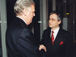 Vorstandsvorsitzende Helmut Ricke (links) und Ron Sommer im Mai 1995.