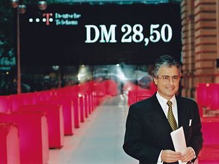 „Unser Börsengang war ein riesiges Medienspektakel. Morgens hatte eine Pressekonferenz mit Ron Sommer, unserem Finanzvorstand Joachim Kröske und Bundesfinanzminister Theo Waigel stattgefunden. Danach strömten alle aufs Parkett. Als es dort pickepackevoll war, erschien auf der Anzeigetafel der erste Kurs – es waren rund 33 Mark, also deutlich mehr als der offizielle Ausgabekurs von 28,50 Mark“, erinnert sich der damalige Pressesprecher Stephan Althoff. Danach stieg ein Telekom-Tross ins Flugzeug, um in New York auch an der Wall Street den Start der Aktie zu feiern. „Ich bin derweil nach Tokio geflogen, Ron Sommer kam aus den USA hinterher. Das Treffen mit dem japanischen Börsenchef folgte einem strengen Zeremoniell: Die jeweiligen Delegationen saßen sich zu fünft gegenüber, aber sprechen durften nur Ron Sommer und der Chef der Japaner – alle anderen machten ein freundliches Gesicht.“
