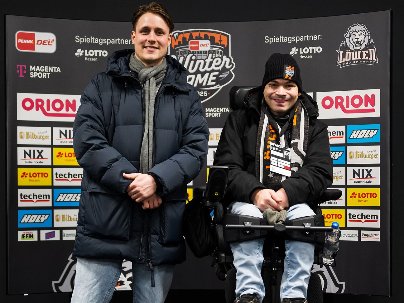 Malte und Yannik durften vor dem Spiel in die Eishockey-Halle.