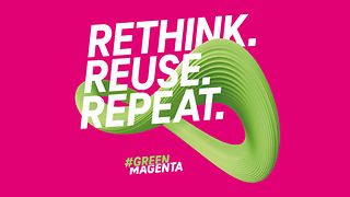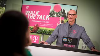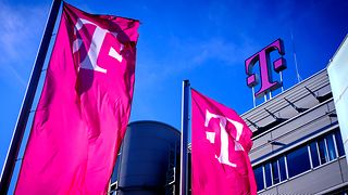 Deutsche Telekom Logo auf dem Dach der Konzernzentrale.