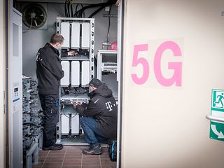 Techniker der Deutschen Telekom rüsten das Netz auf 5G auf.
