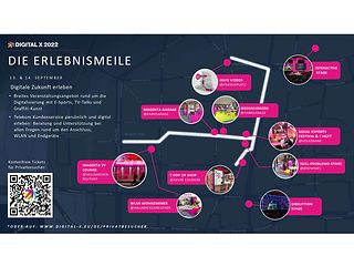 Am 13. und 14. September 2022 steht die Kölner Innenstadt wieder ganz im Zeichen der Digital X. Vom Mediapark im Norden bis zum Belgischen Viertel im Süden zeigt die Telekom gemeinsam mit zahlreichen Partnern die neusten Entwicklungen in der Digitalisierung. In diesem Jahr ist die Messe zum ersten Mal auch für private Besucher geöffnet. Auf der Website www.digital-x.eu/privatbesucher können Interessierte ihr kostenfreies Ticket buchen und erhalten umfassende Informationen zu den Veranstaltungen. Neben Serviceangeboten bietet die Telekom ein breites Rahmenprogramm rund um Digitalisierungsthemen, dazu das Equal E-Sports Festival, Experten-Vorträge und TV-Talks bis zu Graffiti-Kunst an den Verteilerkästen der Telekom.