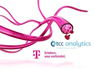 Logos von Telekom und TCC Analytics vor Grafik mit Blutbahnen