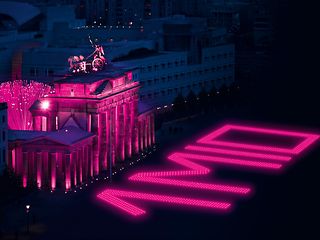 Brandenburger Tor mit Magenta-Schriftzug „1 Mio“.