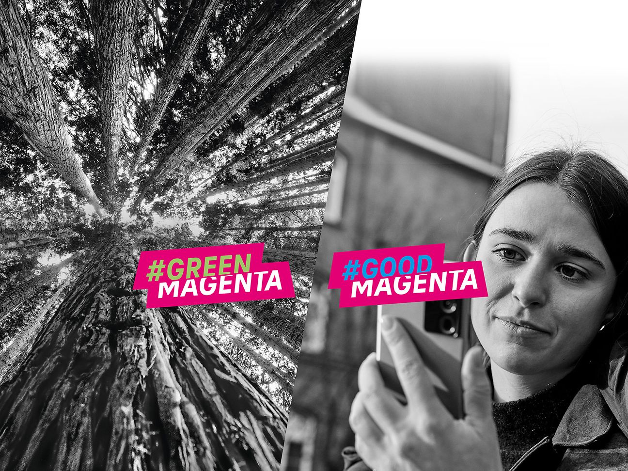 Mit #GreenMagenta und #GoodMagenta kennzeichnet die Telekom ihr Engagement für Umwelt und Digitale Teilhabe.
