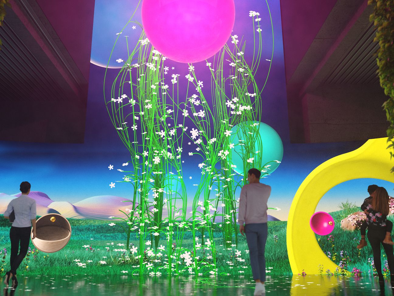 Der Moon Garden steht im Zentrum des Magenta Moon Campus. In der großflächigen Lichtkunst-Installationen tauchen die Besucher*innen in eine Komposition aus Video und Ton ein. Umgeben von einer 30 Meter breiten und bis zu 7 Meter hohen Projektionsfläche fördert der „Mondgarten“ Neugier und Improvisationsvermögen. Wer mag, kann auf Naturereignisse virtuell einwirken und so das Zusammenspiel zwischen Technologie und Nachhaltigkeit erleben.
