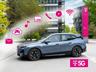 BMW bringt mit iX erstes Serienfahrzeug mit 5G an Bord - Surfen und streamen im besten 5G-Netz der Telekom dank Personal eSIM.