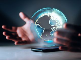 Das Bild zeigt ein Smartphone sowie eine Weltkugel.